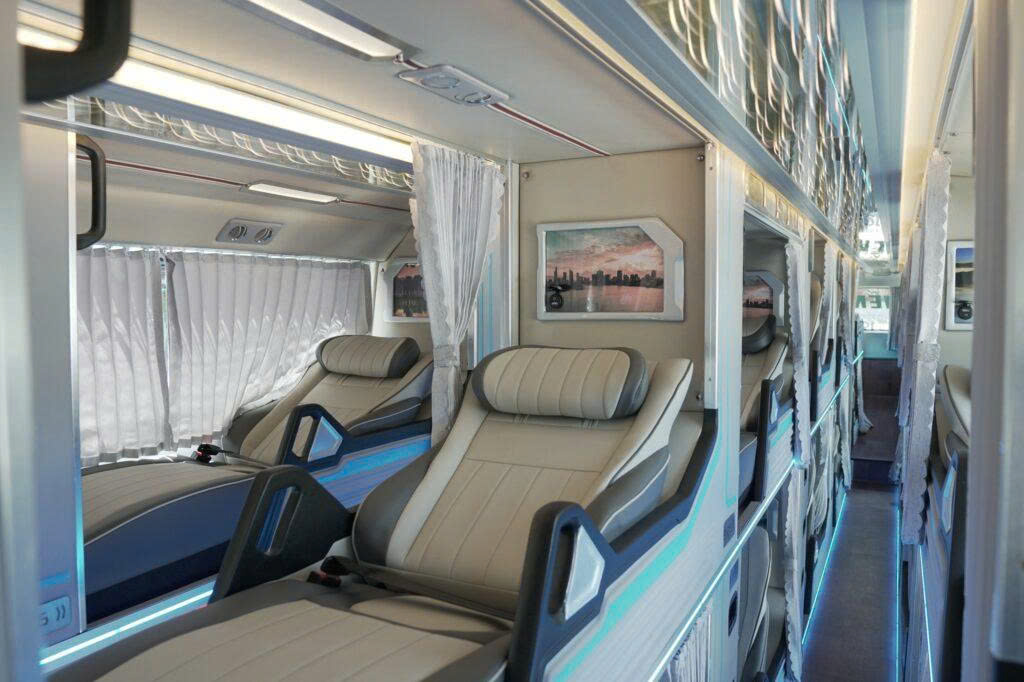 Với dòng 34 giường, Ninh Bình discovery Bus sẽ mạng cho quý khách chuyến đi êm ái, thoải mái, tiết kiệm thời gian. Với tiêu chí An Toàn – Tiện Nghi – Sang Trọng hãng xe sẽ làm cho chuyến du lịch của bạn thêm phần sinh động