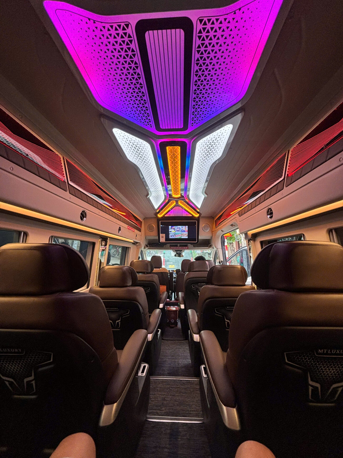 Loại xe bus được Ninh Bình Discovery Bus sử dụng là dòng xe bus hiện đại và chất lượng nhất trên thị trường hiện nay – dòng xe Hyundai Limousine 11 ghế. Chiếc xe này được trang bị hệ thống ghế ngồi vô cùng êm ái, rộng rãi và thoải mái, cùng với rất nhiều tiện nghi khác như đèn đọc sách, wifi,… Đảm bảo mang đến du khách sự hài lòng, sự thư giãn tuyệt đối, xóa tan đi nỗi lo sợ về tình trạng say xe thường gặp. Điều đặc biệt nhất, tuyến xe bus Ninh Bình đi Hà Nội của chúng tôi sẽ đón du khách ngay tại các khách sạn nằm trong thành phố hoặc các khách sạn nằm dọc trên tuyến đường mà xe chạy, giúp chuyến đi của quý khách thuận tiện hơn bao giờ hết.